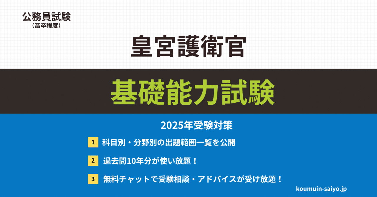【過去問】皇宮護衛官採用試験の問題と解答【使い方と目的】」でまとめています。