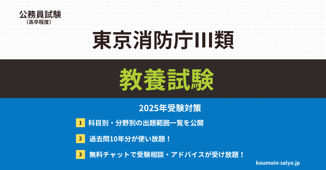 今回は東京消防庁消防官(一類、二類、三類)採用試験の教養試験について、ボーダーと効率的な対策方法を解説しました。